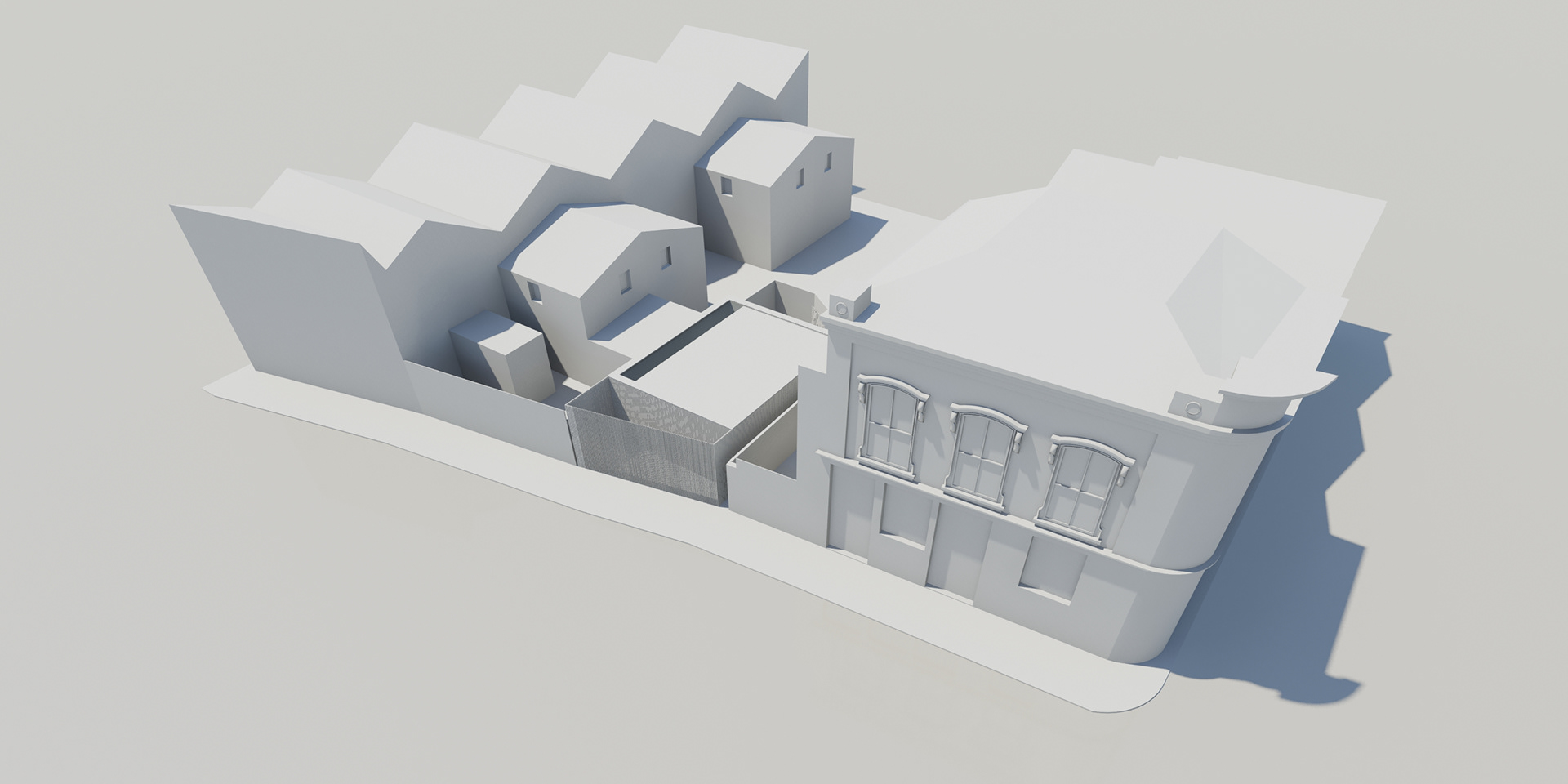 Previously occupied by a building yard, the site is defined by a tall perimeter brick wall, in which the design carefully carves a space for the new residential dwelling, nestling itself respectfully next its prominent neighbour, hidden from view.