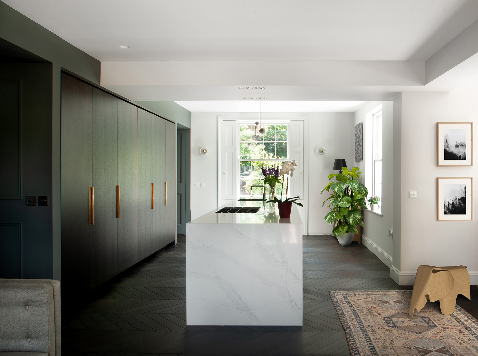 The locally listed Georgian house had been stripped in the 1980s of all internal original features.. The projects consisted in restoring the original character of the house, combine the current small living/dining into a open space which include the kitchen and create a sustainable home. A new porch will buffer the home from the street, while the garden will be re-landscaped to combine different ecological areas
